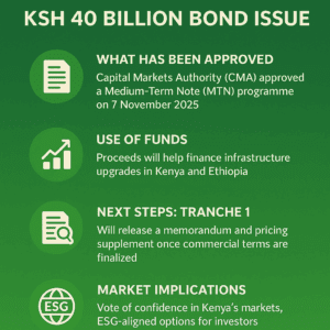 The approval was granted on November 7, 2025, by the Capital Markets Authority (CMA) to Safricom PLC to establish a medium-term note (MTN) program. Instead of issuing a single bond, Safaricom PLC may issue different “notes” in several tranches under this program.